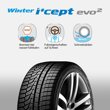 Speziell entwickelt für die Winterverhältnisse auf europäischen Straßen, garantiert der i*cept evo² durch seine hochgriffige Silica-Mischung optimale Schnee- und Nasstraktion. Eine verstärkte Seitenwand mit breiter Reifenschulter sorgt zudem für direkte Lenkreaktion und stabiles Handling – damit Sie auch im Winter immer in der Spur bleiben.